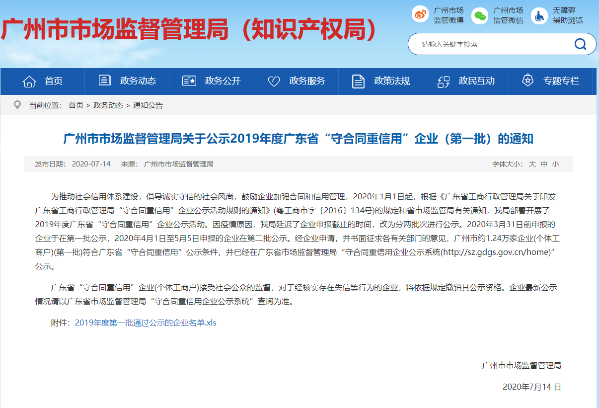 近日,廣州市市場監(jiān)督管理局對2019年度廣東省“守合同重信用”企業(yè)進行公示,我司憑借著重信守約的行為準則,健全的合同管理體系,誠信經(jīng)營,規(guī)范管理,順利通過了最終評審,成功獲得了廣東省“守合同重信用”企業(yè)證書。